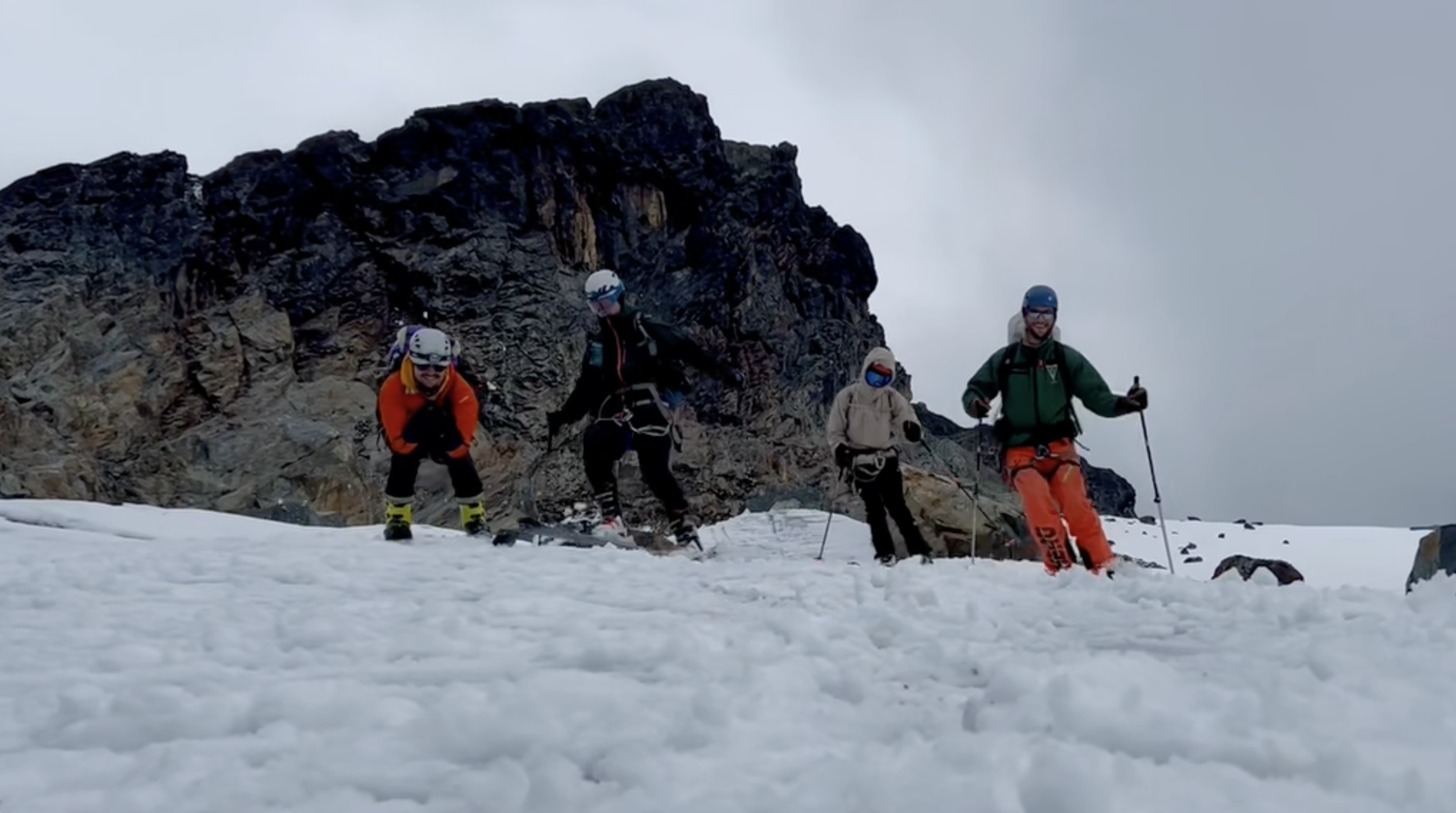 Yes! It pushed us to the limit. On day six, the summit day, we started at 2am, scaling wet cliffs in the dark, weak and delirious from the altitude. The weather was bad, and we decided to leave our skis below the summit.